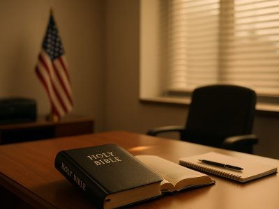 Open Bible in front of the U.S. Capitol for the blog What Christians Need to Know About Aftyn Behn