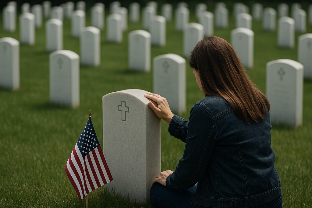 woman honoring sacrificial love by visiting veteran's grave on Memorial Day