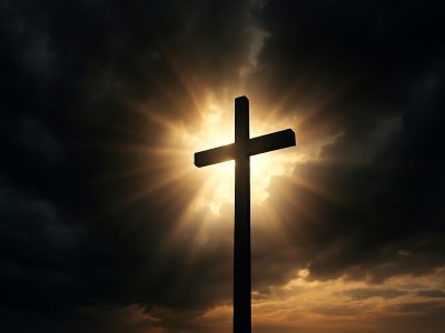 Cross shining through storm clouds representing Bible truth